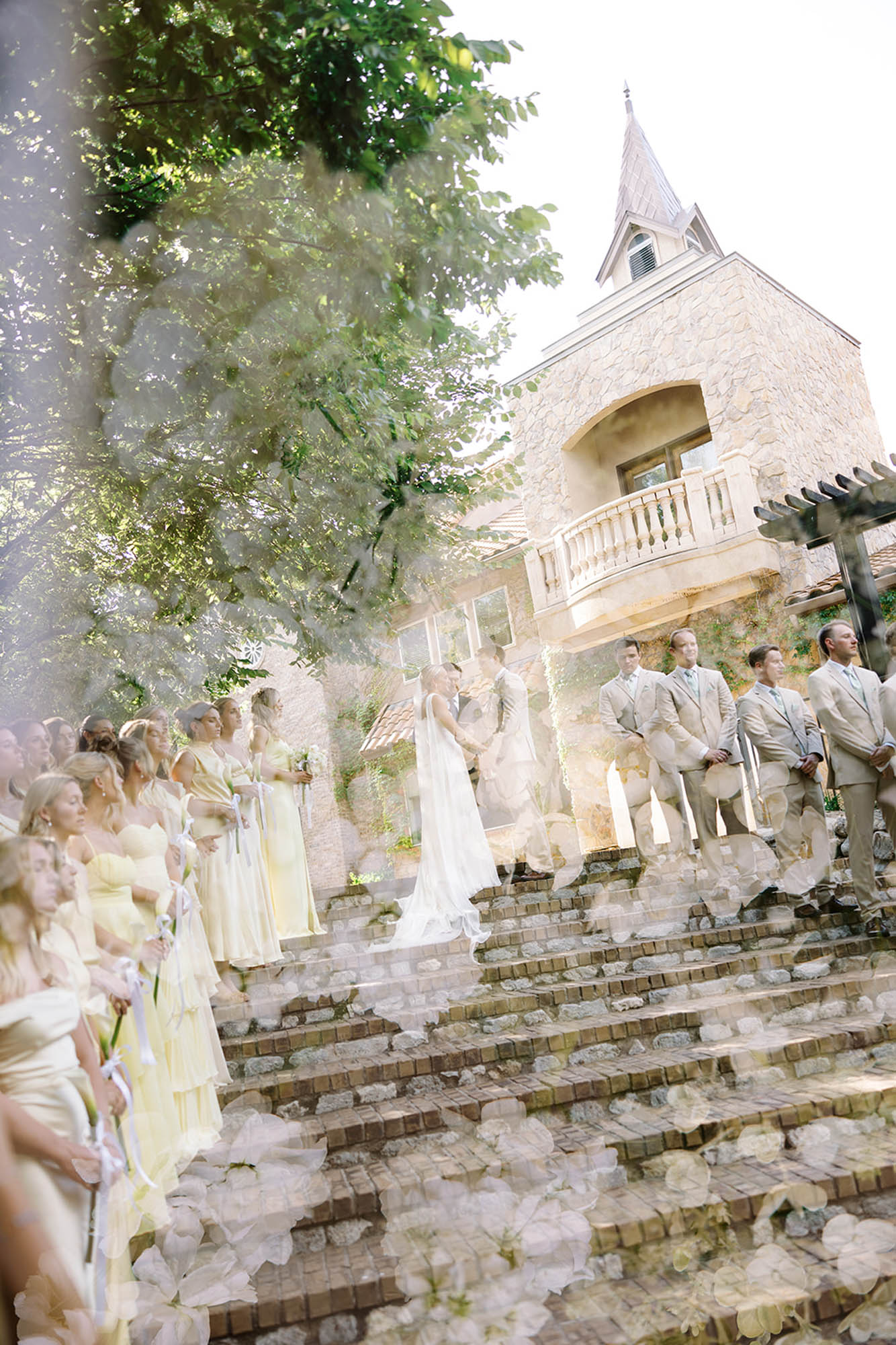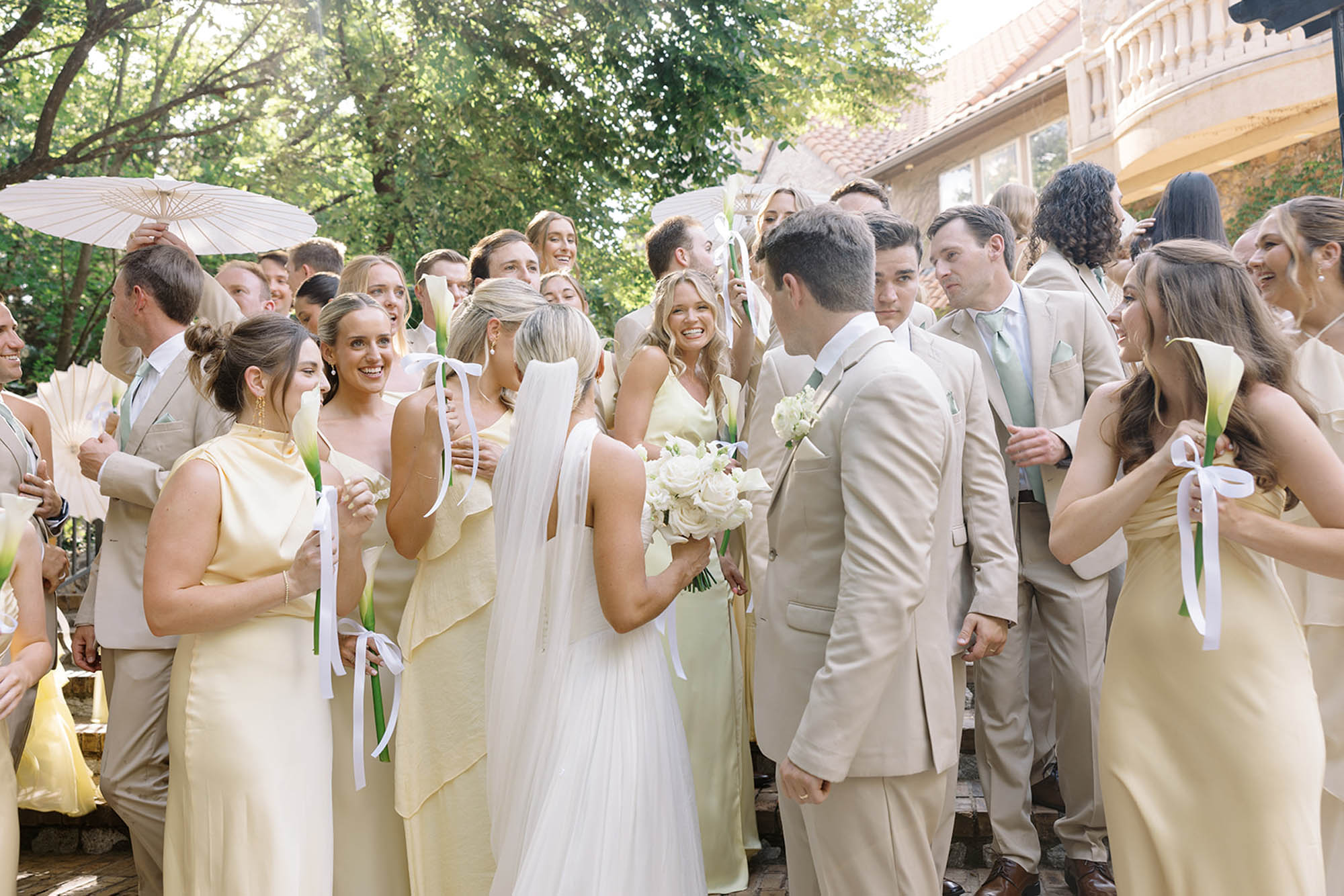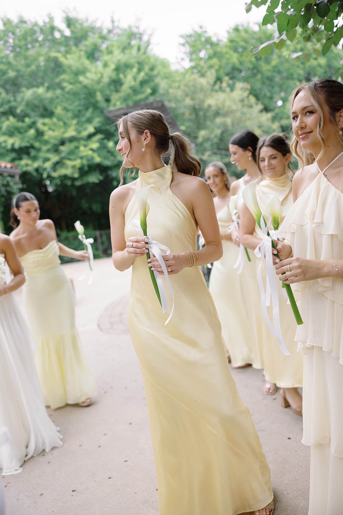 Radiant in butter yellow, the wedding party at Aristide, Mansfield, embodied the season’s sweetest trend in a garden setting.