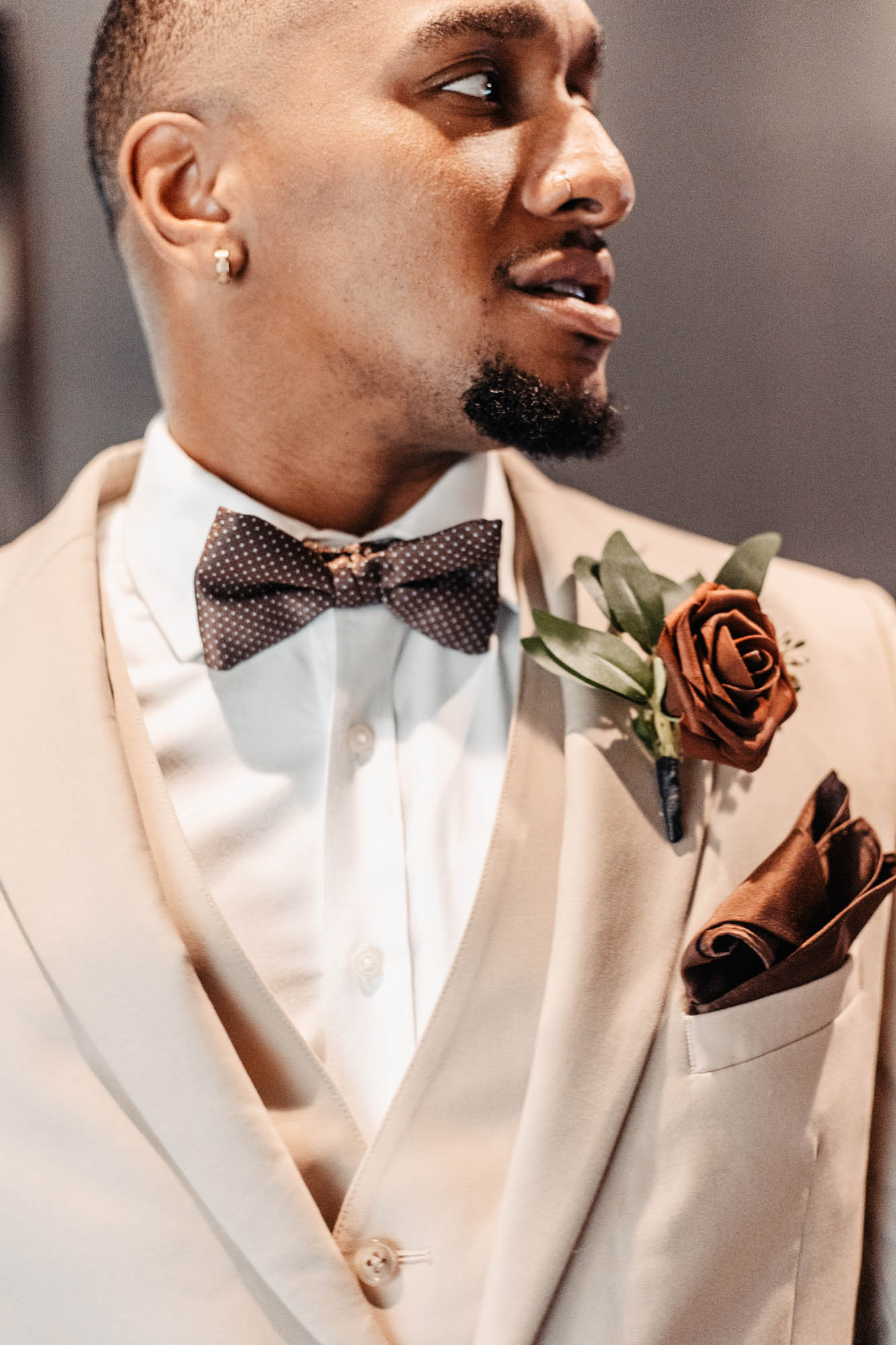 Mocha Mousse, which was declared Pantone’s Color of the Year for 2025, “nurtures with its suggestion of the delectable quality of cacao, chocolate and coffee, appealing to our desire for comfort,” the company stated. For those reasons, it makes for a perfect wedding color — especially for couples who want to create an atmosphere of cozy elegance. Naturally, the shade lends itself to indulgent desserts, like this dark-chocolate espresso cake by The Jenny Layne Bakery.