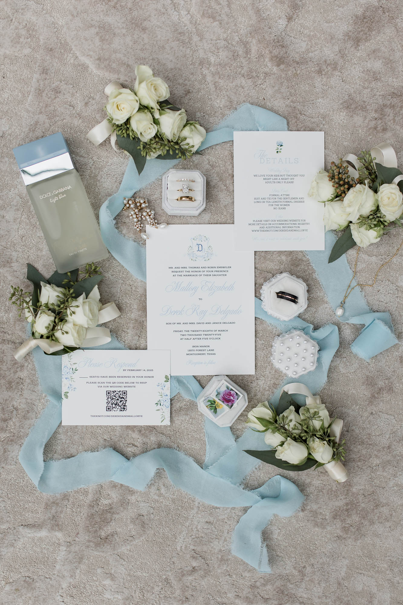 While soft blues have recently become a prominent trend in fashion and design, this wispy shade has long been a timeless favorite in the wedding industry — and it’s easy to see why. Baby blue has a gentle, calming vibe that makes it universally appealing. Case in point: These wedding invitations, created by Lyons Paperie, which incorporate touches of light blues throughout. At another wedding, each bridesmaid showed up in a unique blue dress — some in airy sky-blue chiffon and others in delicate floral prints. Even more blues were cast into stunning floral installations, welcome and bar signage, and a multi-tiered confection for this celebration at the Chapel at Riverwalk, Flower Mound.