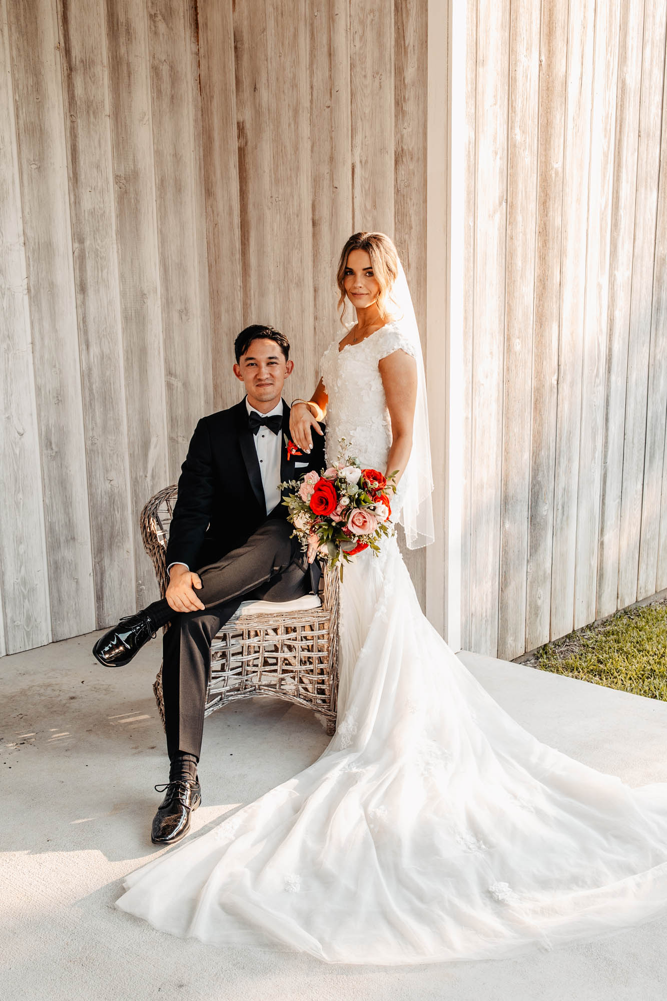 Tomato red — a juicy, vibrant red with the slightest hint of orange — packs lots of energy, which is why it’s becoming a trending shade for couples who want something a little more expressive than the standard-issue red. Word to the wise: Tomato red can be overpowering, but when it’s thoughtfully balanced with softer tones, it can create head-turning focal points — without overwhelming the overall aesthetic. This couple, for example, wove the orangey-red shade into the bride’s bouquet and the groom’s boutonniere. At another wedding, tomato red florals (interspersed with classic reds) adorned a grand staircase. Whether you’re looking to follow suit and incorporate trendy hues or prefer to stick with the tried-and-true, our standout vendors are here to help bring your color vision to life at Walters Wedding Estates.
